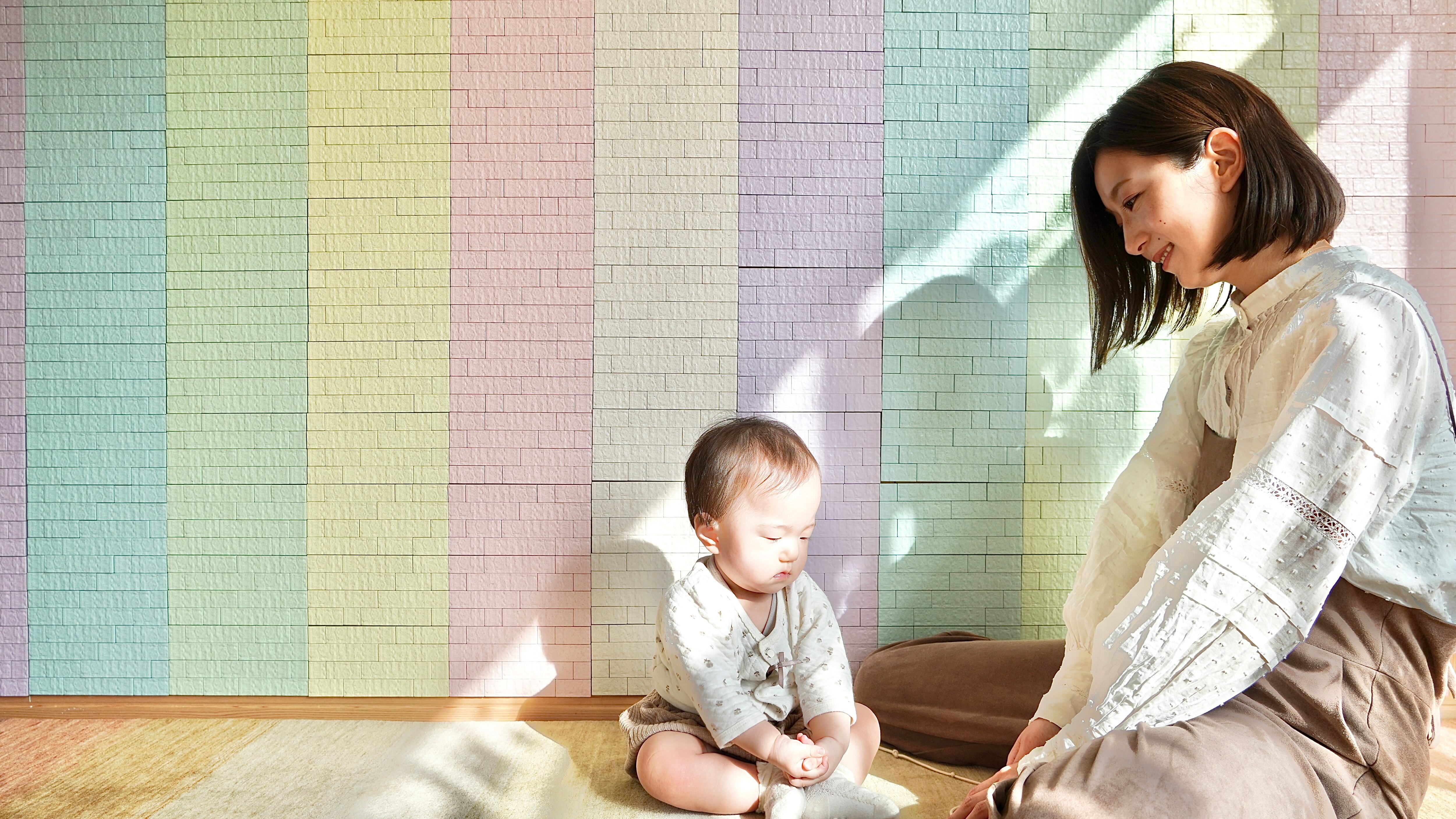 自然成分50%でアースカラーで揃えました、優しい壁面でありながらカラフルで個性のある空間を演出します。